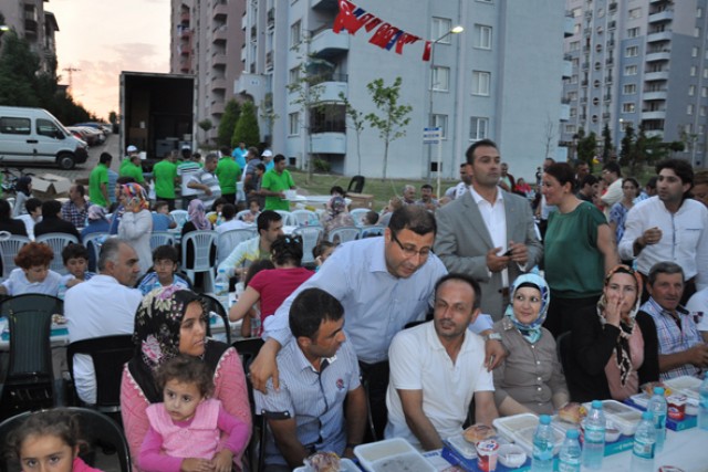 Kiptaş 1 konutlarında 3 bin 500 kişi ile beraber iftar sofrasında buluşmak bizler için çok anlamlı ve önemli. Çünkü Kiptaş 1 Konutları dediğimiz bu siteler yapılmasın diye vakti zamanında birileri çok ama çok uğraştılar. ‘Kiptaş buraya gelirse huzurumuz bozulur’, ‘güzel binalar yapmazlar’ diye karalama kampanyaları yaptılar. Hatta Boğluca Deresini bahane ederek ‘Onlar buradakileri kandırıyorlar. Dereyi dahi yapmazlar’ diye karalama kampanyası yaptılar. Ama bu gün dördüncüsünü organize ettiğimiz şu iftar programında görüyoruz ki, artık bu alanlara, Kiptaş’ta oturan kardeşlerimizi ve misafirlerimiz sığmayacak çok. Bu iftarlar aynı zamanda komşuluk haklarını da buluşturuyor, kaynaştırıyor, birlik ve beraberliğin de sağlanmasına vesile oluyor.