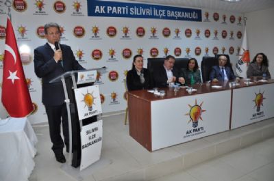 AK Parti Silivri İlçe Teşkilatında gerçekleştirilen toplantıya katılan AK Parti İstanbul Milletvekilleri Tülay Kaynarca ve Ünal Kaçır, AK Parti Silivri Belediye Başkan Adayı Tahir Sert’in adaylığını tebrik ederek hayırlı olsun dileklerinde bulundu. AK Parti İstanbul Milletvekili Tülay Kaynaca, AK Parti’nin bir hizmet kalesi olduğunu söyleyerek " bu kalenin inşasında maddi manevi emeği ve katkısı olan herkese çok teşekkür ediyorum. Silivri’de AK Parti’nin kuruluşundan bu güne kadar çok büyük hizmetler yapıldı. Ben hepsine ayrı ayrı teşekkür ediyorum. Tahir Sert başkanımız artık Sayın Başbakanımızın Silivri’mize emanetidir. Bu emanetimize sahip çıkacağız ve inşallah 1 Nisan günü Silivri’nin anahtarını Tahir Sert başkanımızla birlikte Başbakanımıza takdim edeceğiz.” dedi. AK Parti İstanbul Milletvekili Ünal Kaçır ise konuşmasında, birlik ve beraberlik mesajı vererek, " Bütün aday adayları arkadaşlarımıza teşekkür ediyorum. Dün buradalardı, bu gün de buradalar, yarında burada olacaklar. Bizim davamız pazara kadar değil mezara kadardır. Bizler bir ve beraber olmak zorundayız. Ülkemize ve milletimize yapılan iç ve dış saldırıları görüyorsunuz. Bizler özellikle bu süreçte vatanımıza, milletimize, partimize ve Başbakanımıza sahip çıkacağız. Bizler en mükemmeli değil en uygun olanını arıyoruz.” diyerek ülke gündemine ilişkin açıklamalarda bulundu.