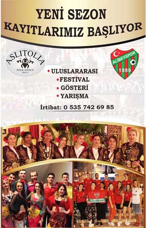Alibeyspor Aslıtolia Halkoyunları Topluluğu yeni sezon kayıtları yapılmakta. Halkoyunlarına gönül verenler, Aslıtolia ile uluslararası festivallere, gösteri ve yarışmalara katılabilir.