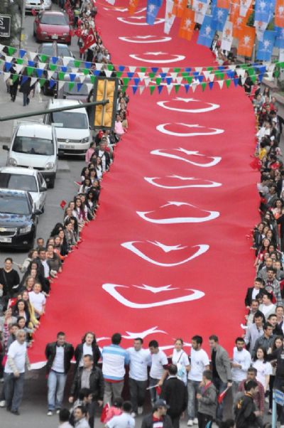 BİNLERİ DEV TÜRK BAYRAĞI TAKİP ETTİ