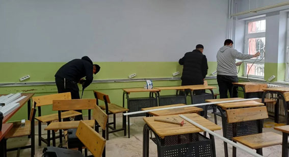 Necip Sarıbekir Mesleki ve Teknik Anadolu Lisesi'nde eğitim altyapısını güçlendirmeye yönelik çalışmalar, örnek bir uygulamayla sürdürülüyor. Okul bünyesinde kurulumu devam eden Bilgisayar Atölyesi'nin elektrik altyapısı ve tesisat işlemleri, öğretmenlerin rehberliğinde bizzat öğrenciler tarafından gerçekleştiriliyor.