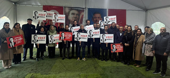 Eurocities ve B40 heyeti, Ekrem İmamoğlu'na yönelik desteklerini göstermek ve tutukluluğuna karşı duruş sergilemek amacıyla Silivri'de ikinci kez basın açıklaması yaptı. Açıklamaya CHP Silivri İlçe Başkanı Doruk Bulut ve partililer de katılarak destek verdi.