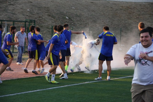 Mustafa Eren'e kaldı. Bu kutlamada takımın malzemecisi Erdinç'te nasibini aldı.