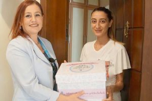 Yetkililer, ailelere kapı ziyaretlerinde bulunarak tebrikte bulunuyor, Belediye Başkanı Volkan Yılmaz'ın selamlarını iletiyor ve hediyesini sunuyor. 0-3 Aylık bebeklerinizin hediyeleri için 444 20 47 irtibat numarasından Basın Yayın ve Halkla İlişkiler Müdürlüğü'ne kayıt yaptırabilirsiniz.