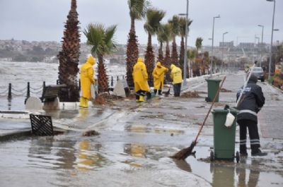 Silivri’de etkili olan şiddetli lodos, ilçenin birçok bölgesinde maddi hasarlı zarara yol açtı. Sahil bölgesi başta olmak üzere, Gümüşyaka, Çanta Kınalı Bölgesi, Selimpaşa ve Semizkumlar bölgelerinde etkili olan lodos sonrası Silivri Belediyesi ekipleri, zararın ortadan kaldırılması için çalışmalarına dün geceden bu yana devam ediyor. Açık ve kapalı yağmur suyu hattı ile kanal temizlik çalışmaları yapan ekipler, denizin taşıdığı çöp ve atıkları ortadan kaldırmak için aralıksız çalışıyor.