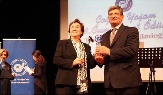 Konuşmaların ardından rahatsızlığından dolayı törene gelemeyen, Prof. Dr. Fatih Hilmioğlu’nun ödülü kardeşi Avukat Hayati Hilmioğlu’na verildi.