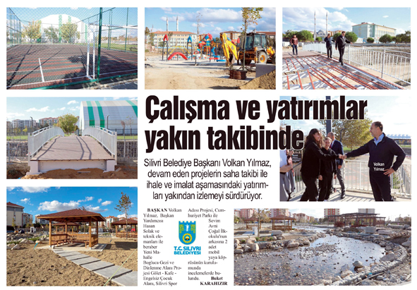 Başkan Volkan Yılmaz, Başkan Yardımcısı Hasan Solak ve teknik elemanları ile beraber Yeni Mahalle Boğluca Gezi ve Dinlenme Alanı Projesi Gölet - Kafe - Engelsiz Çocuk Alanı, Silivri Spor Adası Projesi, Cumhuriyet Parkı ile Sevim Avni Çoğal İlkokulu'nun arkasına 2 adet mobil yaya köprüsünün kurulumunda incelemelerde bulundu.
