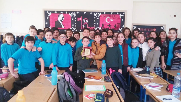 Ertuğrul Gazi Ortaokulu'nda düzenlenen “Çanakkale Zaferi” konulu en başarılı panolar, Okul Müdürlüğü tarafından ödüllendirildi.