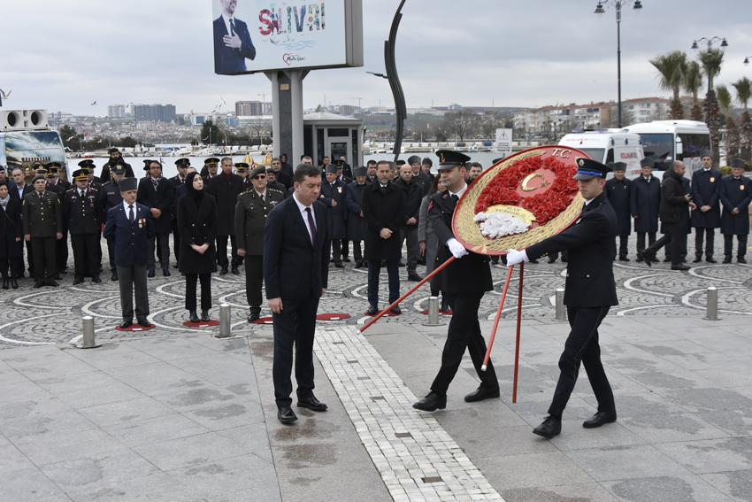 Silivri İlçe Kaymakamlığı, Jandarma Komutanlığı, Belediye Başkanlığı ve Türkiye Muharip Gaziler Derneği Silivri Şubesi adına çelenkler Atatürk Anıtı'na sunuldu.