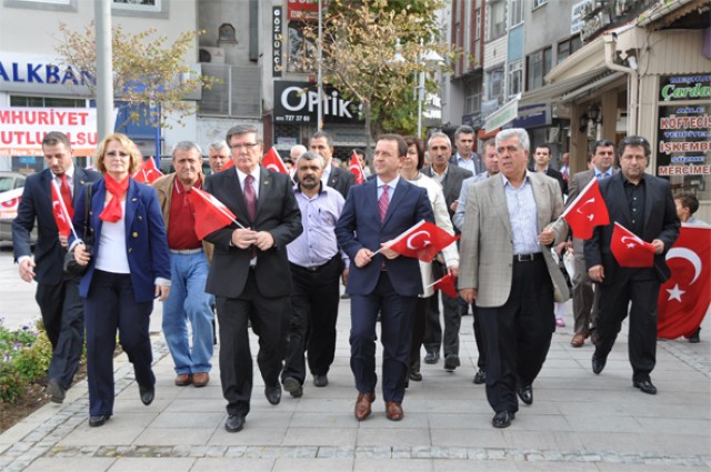 Cumhuriyet'i kuran kadroların partisi olarak, Cumhuriyet Bayramı'nı kutlamak için hiç kimseden izin alacak değiliz. Herkes bilsin ki Cumhuriyet'imizin temel değerlerine el uzatmaya kalkanların çarpacağı duvar, bundan önce olduğu gibi bundan sonrada; Cumhuriyet Halk Partisi'nin bu ülkeye demokrasiye ve Cumhuriyet'e olan sevgisi ve bağlılığı olacaktır.