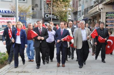 Çağdaş uygarlık yolunda, Cumhuriyet'imizin yarattığı değerlerin, kazanımların ve onları korumak üzere bizlere yüklediği görevlerin bilincinde yurttaşlar olarak, başta Cumhuriyetimizin kurucusu büyük önder Mustafa Kemal ATATÜRK ve silah arkadaşları olmak üzere özgürlük ve bağımsızlık uğruna Cumhuriyetimizin kuruluşunda canlarını feda eden aziz şehitlerimiz ve gazilerimizi bir kez daha saygıyla selamlıyoruz.”