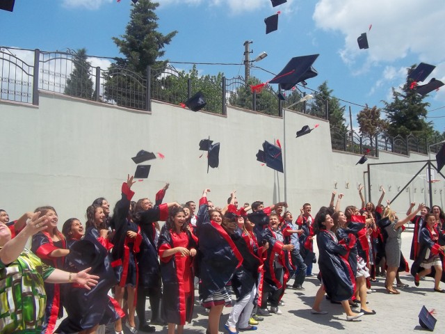 öğretmenler ve öğrenci velileri katıldı. Kep ve cübbe giyen öğrenciler, Sınıf