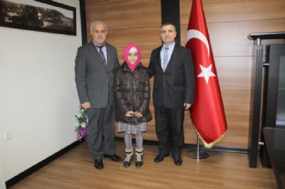 Tavşan, Okul Müdürü Mehmet Şenel’le birlikte dün İlçe Milli Eğitim Müdürü Ahmet Ay’ı ziyaret etti. Ay, öğrenciyi bu başarılı sloganı ve elde ettiği derece dolayısıyla tebrik ederek kitap ödülünde bulundu. İlçe Müdürü, öğrenciye yeteneklerine kulak vererek onları daha da geliştirmek için çalışmalarını sürdürmesini dilerken, okul hayatında da başarılar diledi.