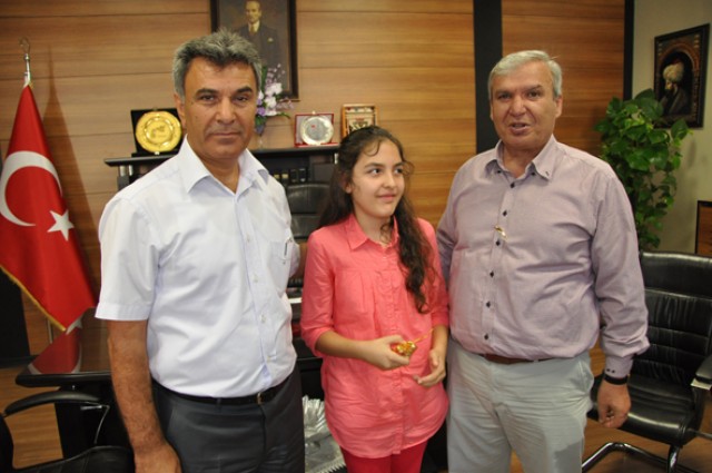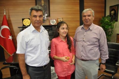 Tuana Yıldırım’ı ailesi ve eski okul müdürüyle birlikte dün makamına davet eden İlçe Milli Eğitim Müdürü İkram Kayapınar, öğrencinin başarısını kutladı.