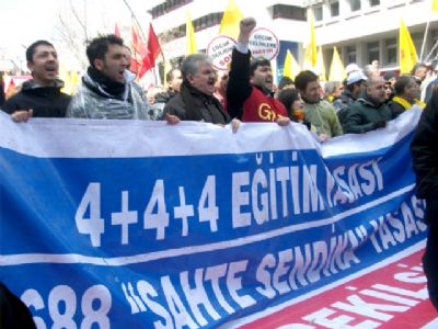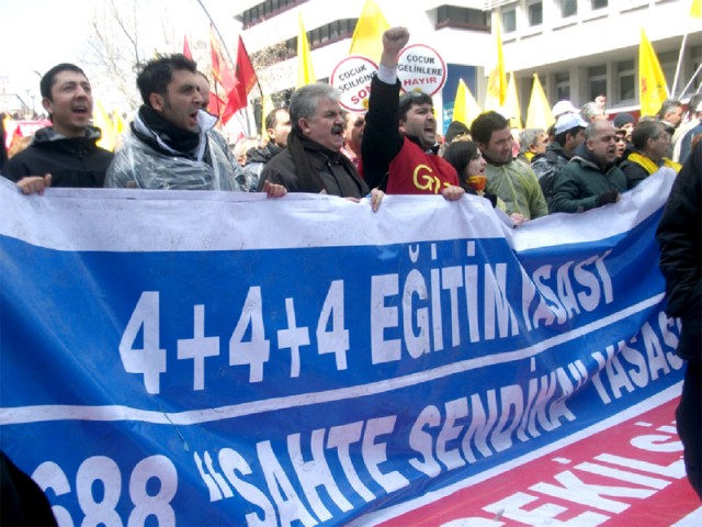 ERDOĞAN, "4+4+4 olarak bilinen İlköğretim ve Eğitim Kanunu ve 4688 sayılı Kamu Görevlileri Sendikalarında Değişiklik Yapılmasına Dair Kanun Tasarısı’na karşı tepkilerimizi demokratik-meşru bir biçimde ifade edebilmek için Ankara’da yapacağımız basın açıklaması hukuk dışı bir biçimde engellenmeye çalışıldı. AKP en temel haklarımızı kullanmamızı dahi engelleyerek yasakçı ve tehditkar tutumundaki ısrarını sürdürüyor.