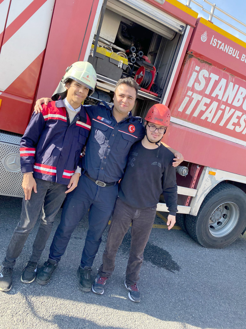 İtfaiye montlarını giyen özel çocuklar, heyecanlandı.