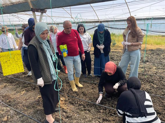 Bölgenin tanınmış üreticilerinden Mustafa Tuzlu'ya ait seraları ziyaret eden öğrenciler, modern bitki üretim süreçlerini yerinde inceleme fırsatı buldu. Öğretim Görevlisi Merve Birinci rehberliğinde gerçekleştirilen ziyarette öğrenciler; fide hazırlama, domates fidelerinin dikimi ve taze fasulye ekimi gibi temel tarımsal uygulamaları bizzat deneyimledi.