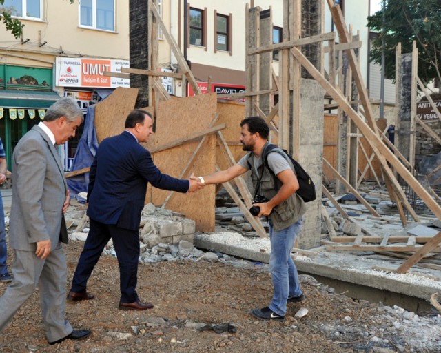 Belediye Başkanı Özcan Işıklar, yıkımı gerçekleştirilen PTT binasının arsası ve