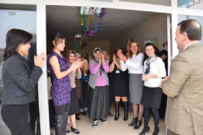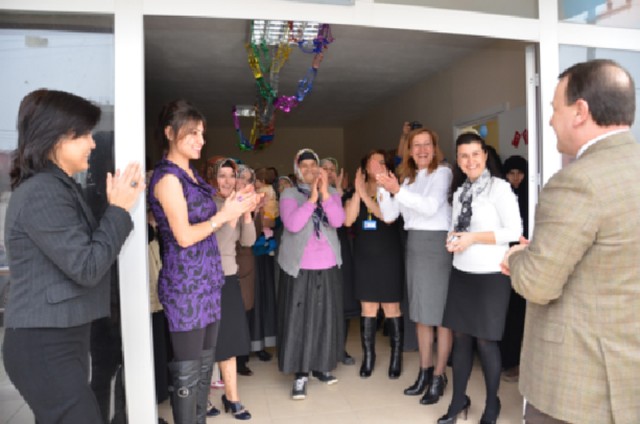 SİLİVRİ Belediye Başkanı Özcan Işıklar’ın en önemli sosyal projelerinden biri olan, açıldığında yedi kursiyerle çalışmalara başlayan ve şimdilerde 152 kursiyere ulaşan Silivri Belediyesi Mahalle Evi çalışmalarını sürdürüyor. Mahalle Evi açılmadan önce tek sosyal yaşantısı çocuklarını okula götürmek olan, şimdi ise Ahşap Seramik Boyama, Kurdele Nakış ve Dekoratif Sabun Yapımı kurslarında kazandıkları özgüvenle, ürettiklerini sergileyen Mahalle Evi kadınları, 8 Mart Dünya Kadınlar Günü nedeniyle Başkan Işıklar’a sürpriz bir kutlama hazırladı. Mahalle Evi girişinde alkışlar ve şarkılarla karşılama yapan kursiyerler, Işıklar’ı duygulandırdı.