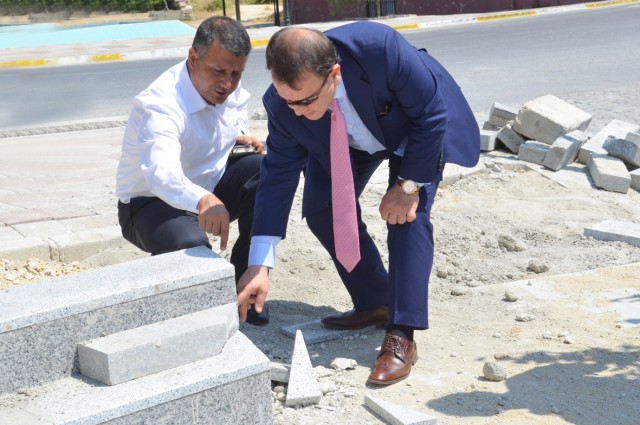 Mahallesi'nde incelemelerde bulunan Başkan Işıklar, yol güzergâhından, heykel