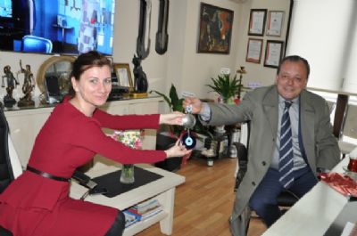 Gerçekleştirdiği ziyaret ile Hürhaber Gazetesi’nin 10. yılını kutlayan Yılmaz Kandemir, "Nazar değmesin ve işleriniz yolunda gitsin diye size bir hediye getirdim. Çok veren maldan, az veren candan” dedi.