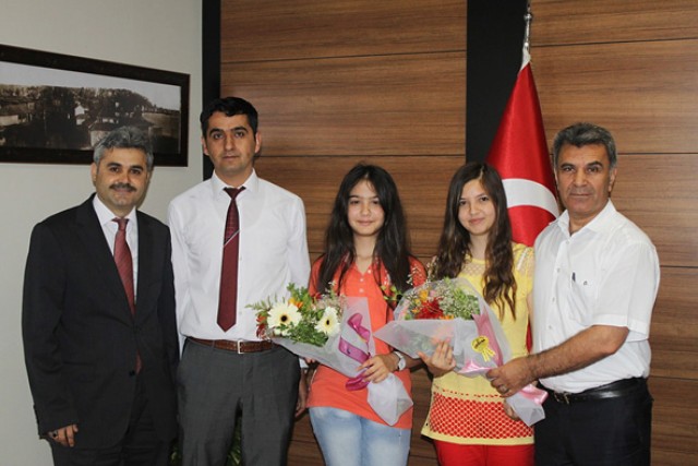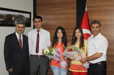 Ceyda Alp ve Sıdıka Beyza Çalışkan’ı tebrik etmek için makamında kabul eden