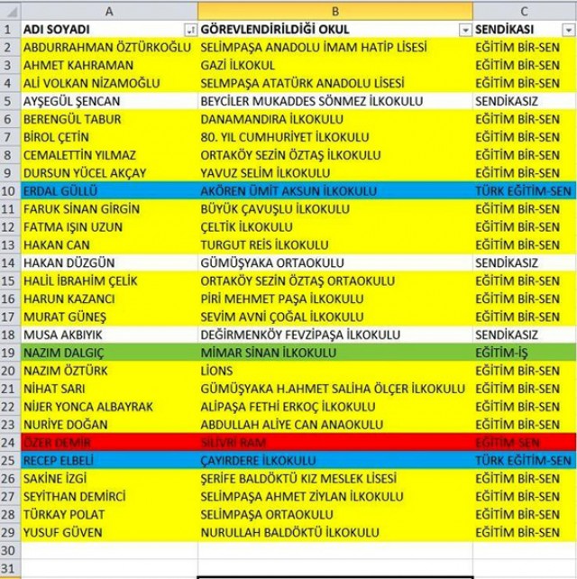 Türkiye Kamu-Sen Silivri Temsilciliği, söz konusu tabloyu, "Silivri’de görevlendirilen müdürlerin sendikal dağılımı bu şekilde. Ne kadar ADALETli bir dağılım olduğu malum sendikanın KALKINMAsından belli.” Sözleriyle paylaştı.