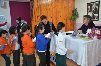 Kitaplar imzalandı ve yazara çiçekle teşekkür edildi.