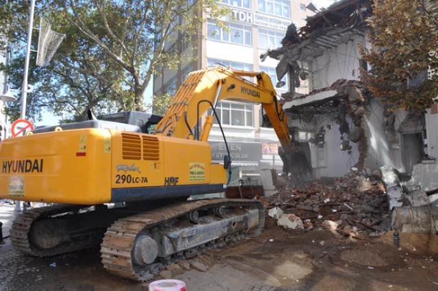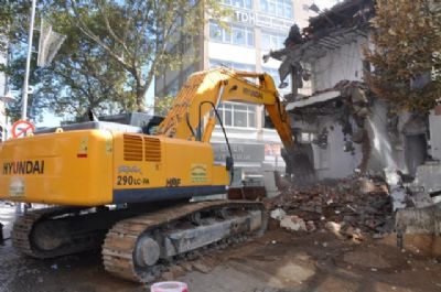 Tiyatro Salonu yapımı için posta binasının yıkım çalışmaları