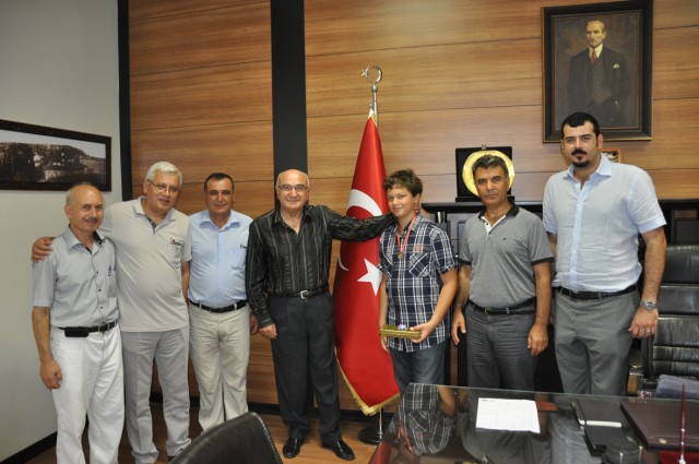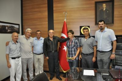 İkram Kayapınar'ın makamında ağırladığı konuklar, Ozan'ı tebrik etmek ve ödüllendirmek