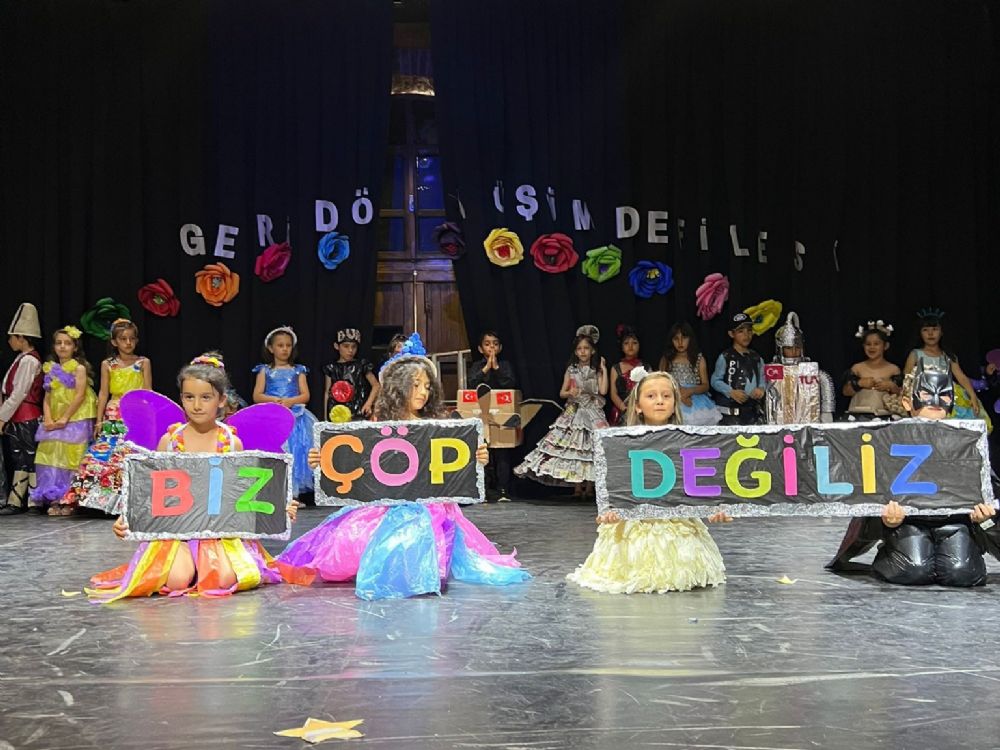 Minik öğrenciler, yaratıcılıklarını kullanarak atık malzemelerden kostümler yarattılar. Düzenlenen defilede sergilenen kostümler beğeni ve etkinlik takdir topladı.