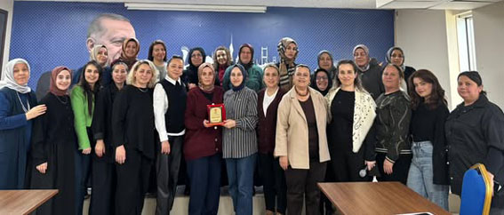 AK Parti İlçe Kadın Kolları Başkanı Fatma Karakoç Meto, 2025 yılında teşkilata en fazla yeni üye kazandıran Fatma Çaylak'ı özverili çalışmaları dolayısıyla kutladı.