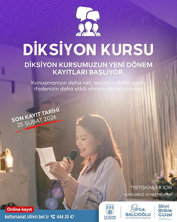 Silivri Belediyesi'nin yetişkinlere yönelik düzenlediği 10 haftalık Diksiyon Kursu için başvurular başladı. Son kayıt tarihi 25 Şubat olan eğitime online başvuru yapılabilecek.