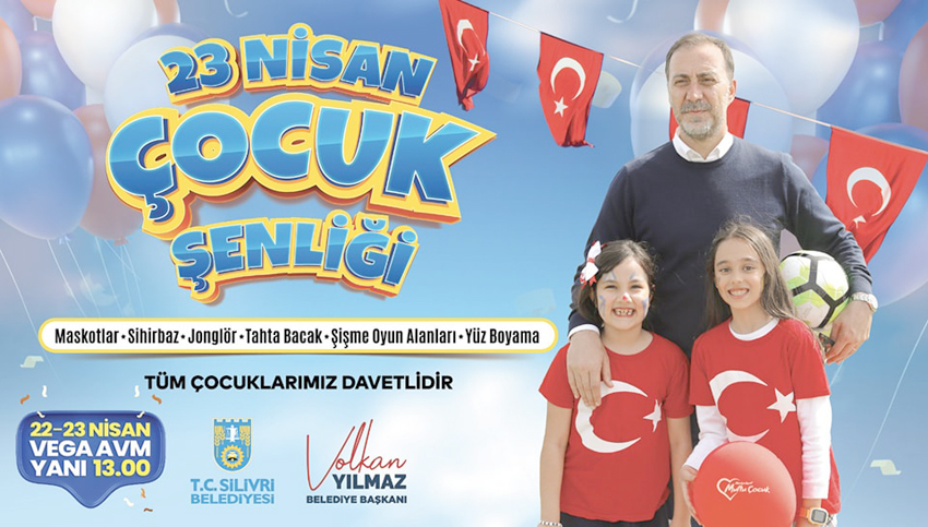 Silivri Belediyesi tarafından, 23 Nisan Ulusal Egemenlik ve Çocuk Bayramı dolayısıyla, 22-23 Nisan tarihlerinde Çocuk Şenliği düzenlenecek.