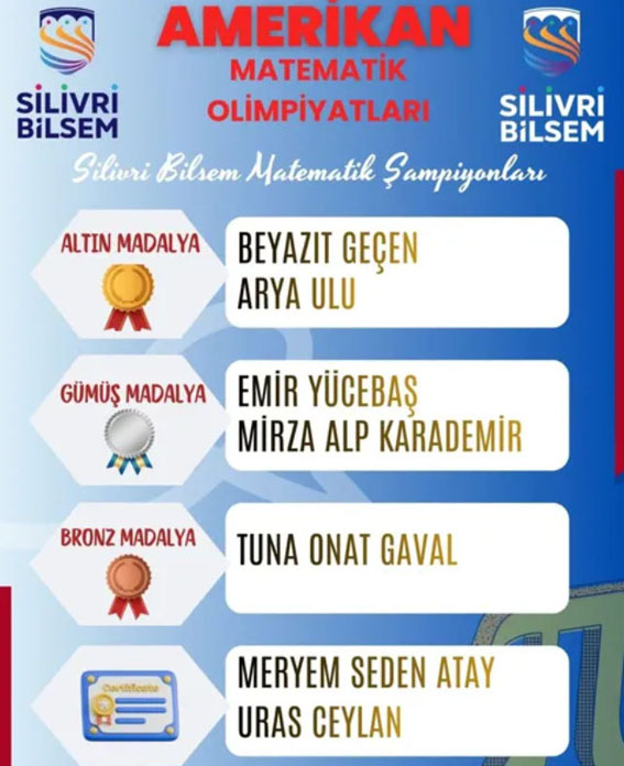 35 ülkenin katıldığı American Mathematics Olympiad'ta (AMO) büyük başarı elde eden Silivri Bilsem öğrencileri, kazandıkları madalyalarla Singapur ve Özbekistan'da yapılacak dünya finallerine katılma hakkı kazandı.