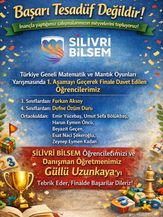 Silivri Bilim ve Sanat Merkezi öğrencileri, Türkiye genelinde düzenlenen Matematik ve Mantık Oyunları Yarışması'nda gösterdikleri başarılı performansla önemli bir başarıya imza attı. Yarışmanın ilk aşamasını geçen öğrenciler finale yükselerek Silivri'ye gurur yaşattı.