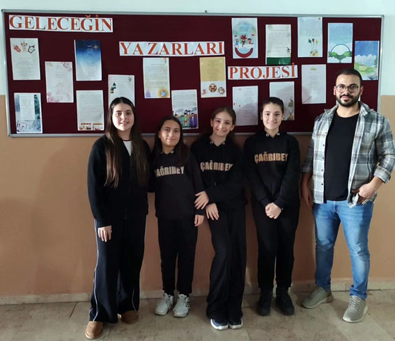 Çağrıbey Ortaokulu öğrencileri, “Geleceğin Yazarları Projesi” kapsamında kaleme aldıkları eserleri okul panosunda sergileyerek yazma becerilerini ortaya koydu.