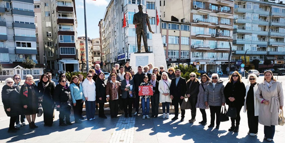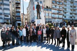 CHP Silivri İlçe Başkanı Doruk Bulut, CHP Silivri Kadın Kolları Başkanı Derya Ural Erdim ve parti yöneticileri, 8 Mart Dünya Kadınlar Günü dolayısıyla Silivri Atatürk Anıtı'nda bir araya gelerek CHP Genel Merkezi'nin hazırladığı bildiriyi okudu.