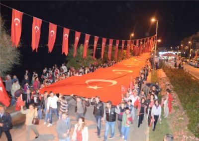 Piramit Çay Bahçesi önündeki konser programının ardından vatandaşlar dev Türk Bayrağı ile Atatürk Anıtı önüne doğru yürüyüşe geçtiler. Marşlar ve sloganlar eşliğinde Atatürk Anıtı önüne gelen halk, burada da cumhuriyet lehinde sloganlar atarak kutlama coşkusunu sürdürdüler.