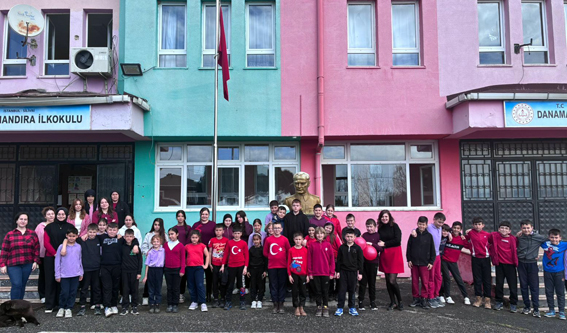 Danamandıra İlk ve Ortaokulu'nda Otizm Farkındalık Günü kapsamında anlamlı bir etkinlik gerçekleştirildi. Okul Müdürü Gizem Ayan öncülüğünde öğretmenler ve öğrenciler, Özel Eğitim Sınıfı öğrencisi Ahmet Salih Özgür için farkındalık oluşturmak amacıyla okul bahçesinde bir araya geldi.