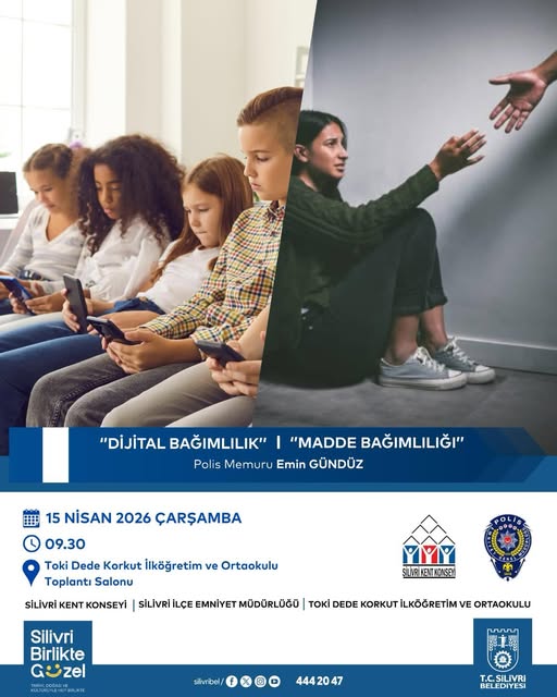 Silivri Kent Konseyi öncülüğünde, Silivri İlçe Emniyet Müdürlüğü iş birliğiyle düzenlenecek “Dijital Bağımlılık” ve “Madde Bağımlılığı” konulu bilgilendirme toplantısı 15 Nisan'da gerçekleştirilecek.