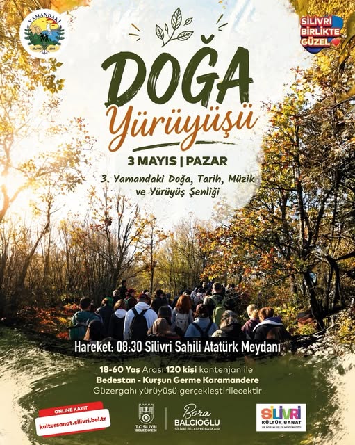 Silivri Belediyesi, Yamandaki Grubu iş birliğiyle 3 Mayıs 2026 Pazar günü Doğa Yürüyüşü gerçekleştirilecek.