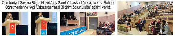 Cumhuriyet Savcısı Büşra Hazel Ateş Sarıdağ başkanlığında, ilçemiz Rehber Öğretmenlerine “Adli Vakalarda Yasal Bildirim Zorunluluğu” eğitimi verildi.