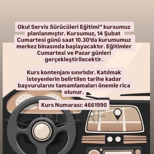 Eğitim programının, Cumartesi ve Pazar günleri gerçekleştirileceği bildirildi. Okul servis taşımacılığı yapan ya da yapmayı planlayan sürücülere yönelik düzenlenen kursun, mesleki yeterlilik ve güvenli taşımacılık açısından büyük önem taşıdığı vurgulandı.