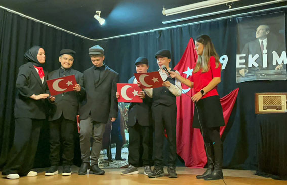 Selimpaşa Ahmet Ziylan Ortaokulu'nda 29 Ekim Cumhuriyet Bayramı etkinlikleri kapsamında sahne alan Özel Eğitim Sınıfı öğrencilerinin “Cumhuriyet” temalı gösterisi izleyenlere duygulu anlar yaşattı.