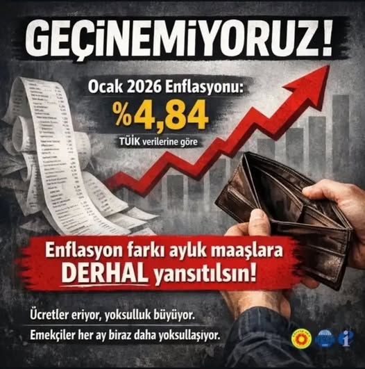 Eğitim-Sen Silivri Temsilcisi Caner Erdoğan, Türkiye İstatistik Kurumu tarafından Ocak 2026 enflasyonunun %4,84 olarak açıklanmasına ilişkin değerlendirmelerde bulundu. Erdoğan, açıklanan oranların emekçilerin günlük yaşamda karşılaştığı gerçek enflasyonu yansıtmadığını vurguladı.