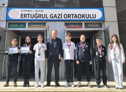 Ertuğrul Gazi Ortaokulu öğrencileri, spor ve akademik yarışmalarda elde ettikleri derecelerle okulun gururu oldu. Başarılı öğrenciler, Okul Müdürü Türkay Polat tarafından ödüllendirildi.