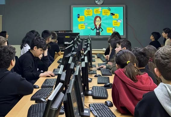 Ertuğrul Gazi Ortaokulu'nda Codeweek kapsamında 7 Nisan Kişisel Verileri Koruma Günü dolayısıyla düzenlenen etkinliklerde öğrenciler, dijital güvenlik ve veri mahremiyeti konusunda bilinçlendirildi.