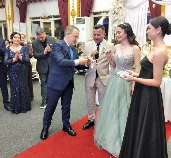 Törende çiftin nişan yüzüklerini takan Özcan Işıklar, Gülfidan ve Gümüşpınar ailelerini tebrik ederek genç çifte mutluluk dileklerini iletti.