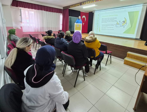 Gazitepe İlk ve Ortaokulu'nda düzenlenen “Sağlık ve Sağlıklı Beslenme” konulu Veli Akademisi programı, Fen Bilimleri Öğretmeni Kader Kaya Tokiz tarafından sunuldu.